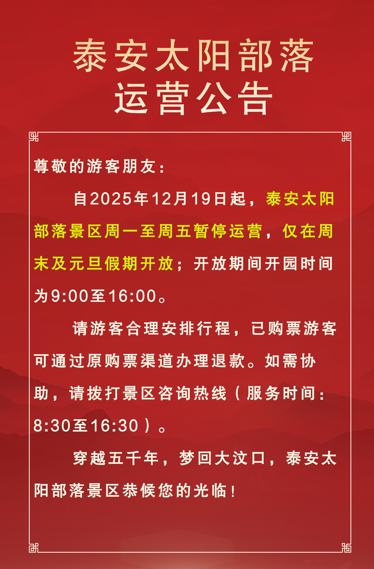 景區(qū)運(yùn)營公告